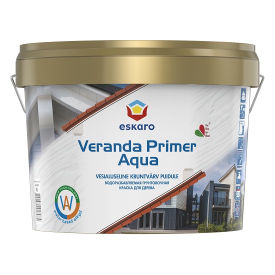 После полного высыхания грунтовочного слоя нанести 1 – 2 слоя краски Eskaro Veranda или Eskaro Kantri. Поверхности, расположенные под навесом, а также заборы, ограды можно окрашивать без финишного декоративно-защитного слоя. Избегать нанесения краски на нагретые солнцем поверхности, при высокой (выше 25°С) температуре воздуха, а также во время дождя и тумана без применения специальных плёночных ограждений, ограничивающих влияние атмосферных воздействий.