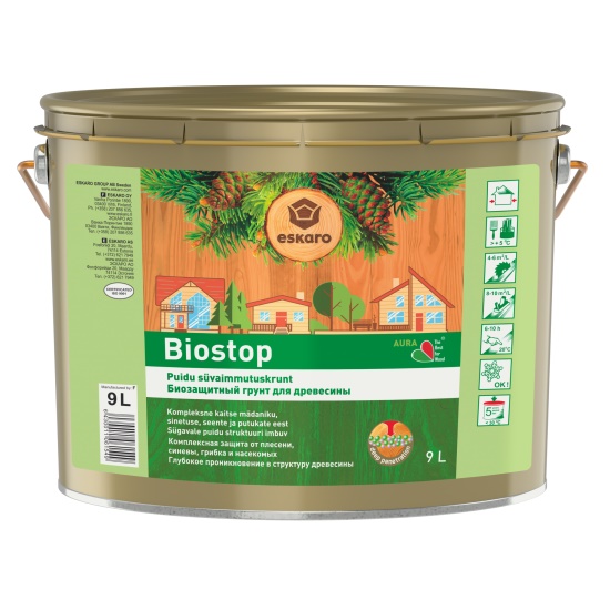 Eskaro Aura Biostop - алкидный грунт глубокого проникновения для длительной защиты древесины.